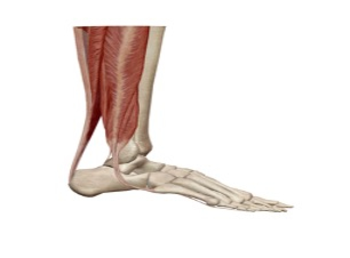 Εικόνα.1. Ο αχίλλειος τένοντας κατφύεται στο οπίσθιο τμήμα της πτέρνας. Η ρήξη συνήθως είναι στο κάτω τριτημόριο αυτού.